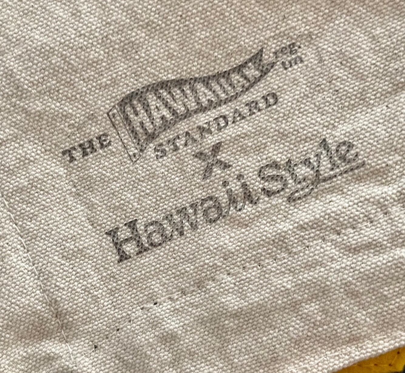 「ハワイスタイル」マガジン63号のオハナ特集に合わせてコラボ制作したOHANAペナント。その証として「ハワイアンスタンダード」×「ハワイスタイル」のスタンプロゴが入る。