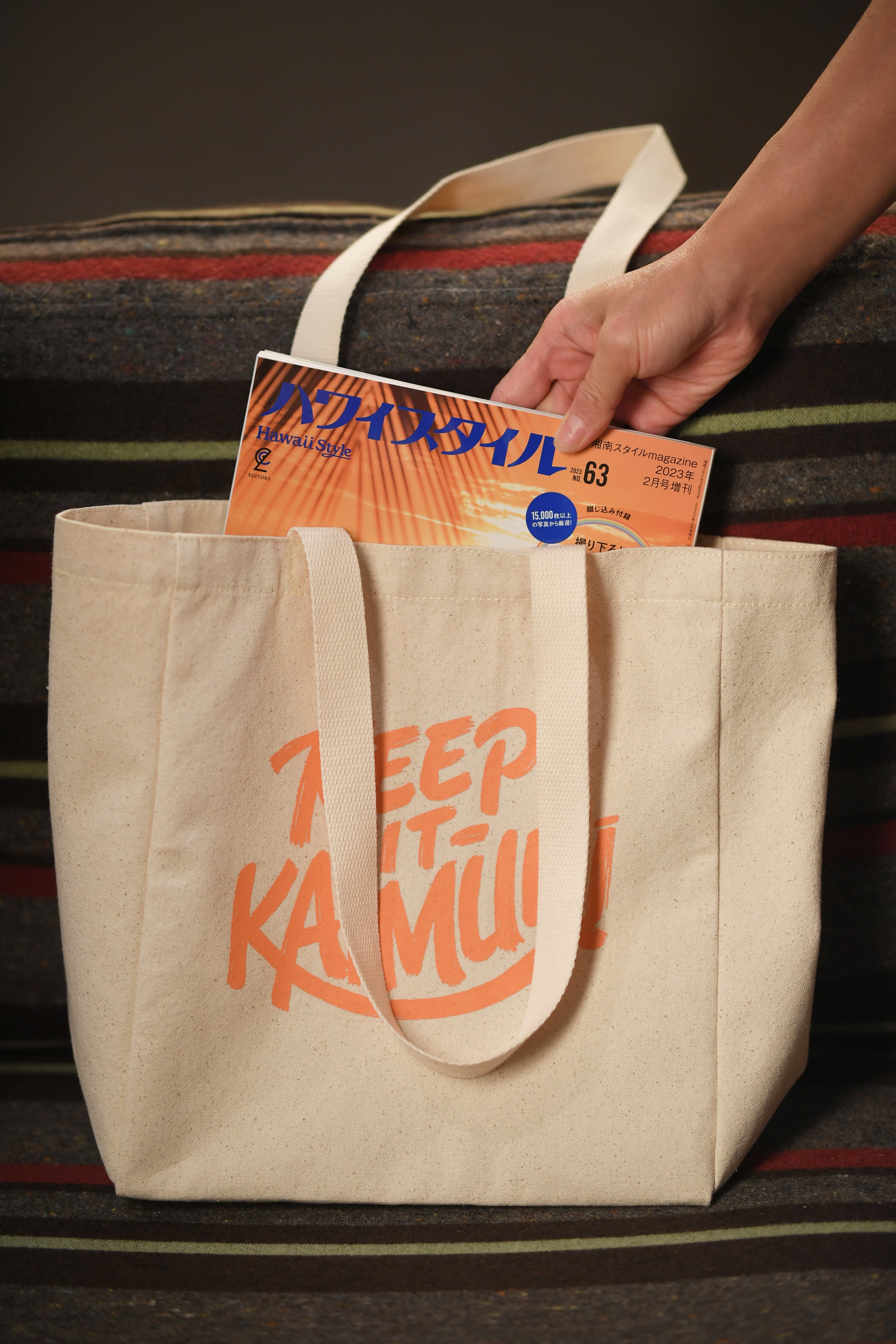 特別付録として、ローカルタウン、カイムキでスモールビジネスを応援する『KEEP IT KAIMUKI』とコラボしたキャンバス・トートバッグを制作。トートバッグと本誌に掲載しているクーポンを持参すると、カイムキに店を構える協賛店から特典が得られます。ぜひ手に入れて、カイムキでショッピングを楽しみながら、ハワイのローカルビジネスを盛り上げましょう!