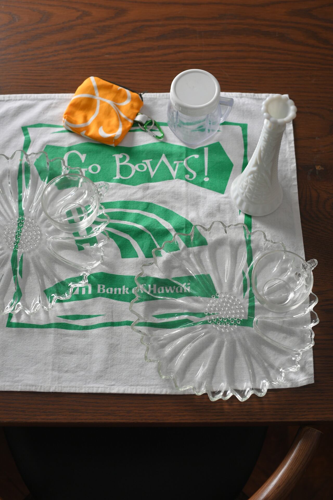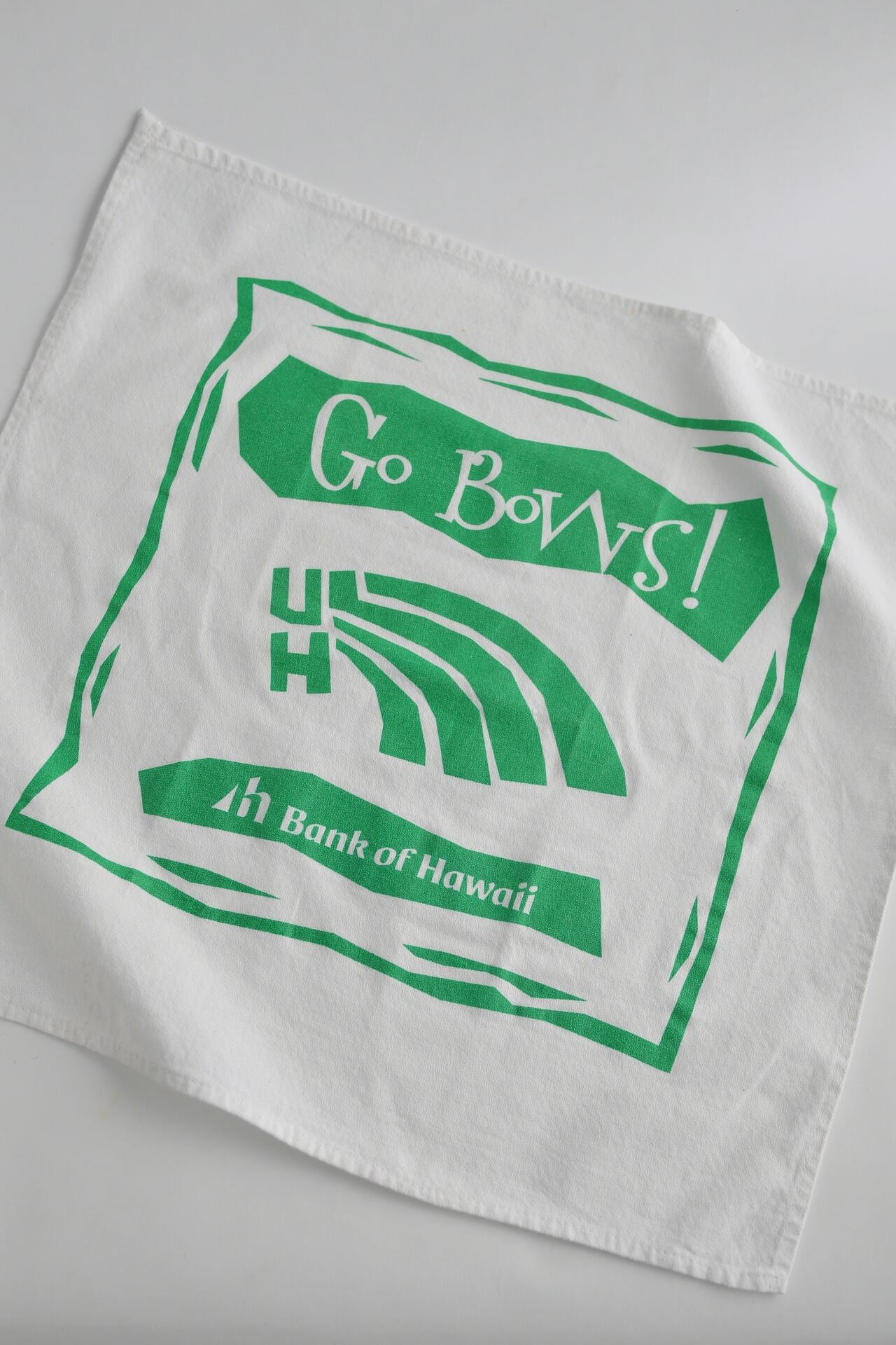 ハワイ大学とバンクオブハワイがコラボしたキッチンタオル。“Go Bows!”とはハワイ大学チームのスポーツ観戦で応援する際の合言葉。