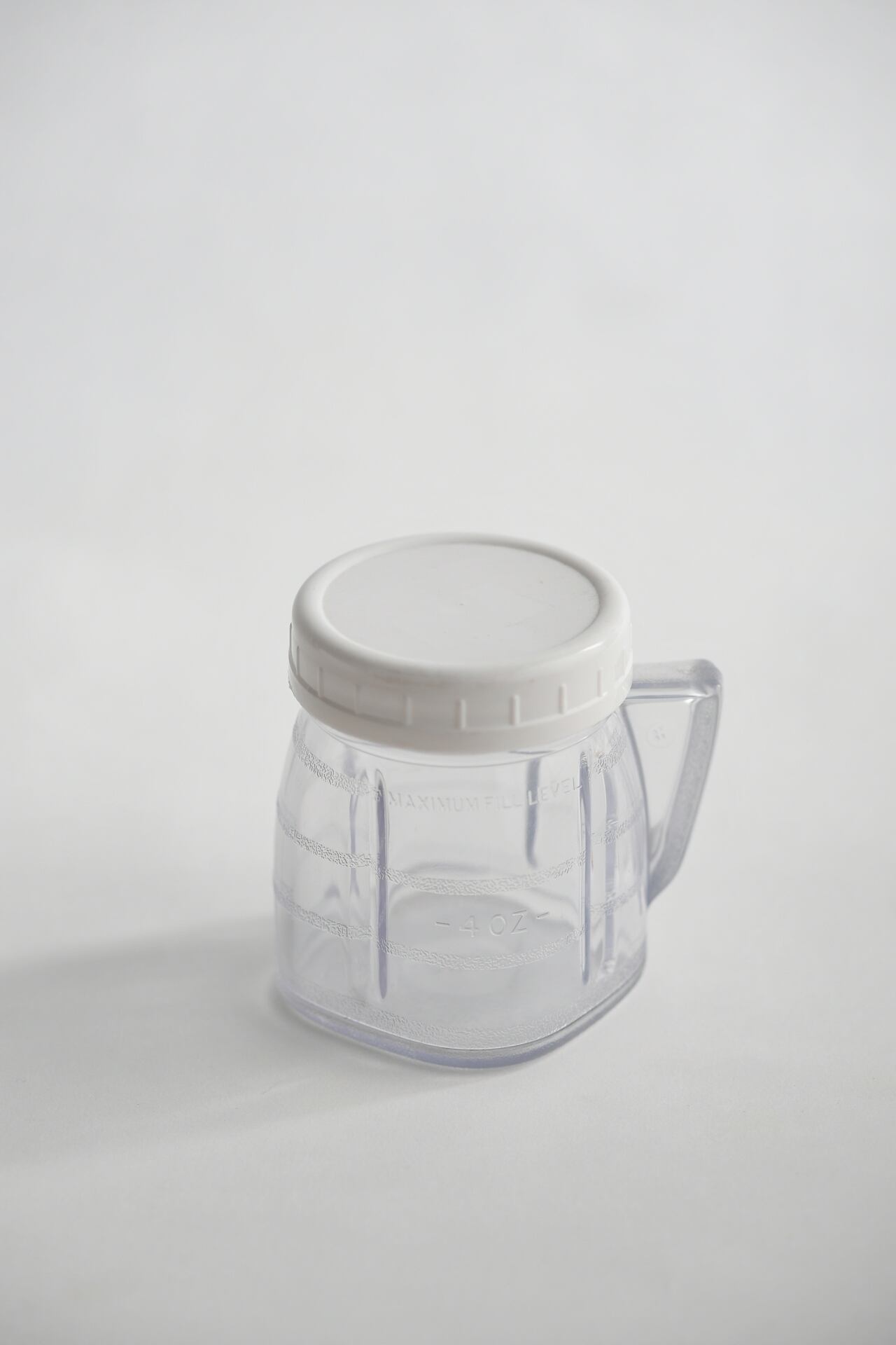老舗ミキサーメーカーのオスター社製のメジャーカップ・ジャー。コップとしても使えるサイズ感。フタは後から交換した物と思われる。