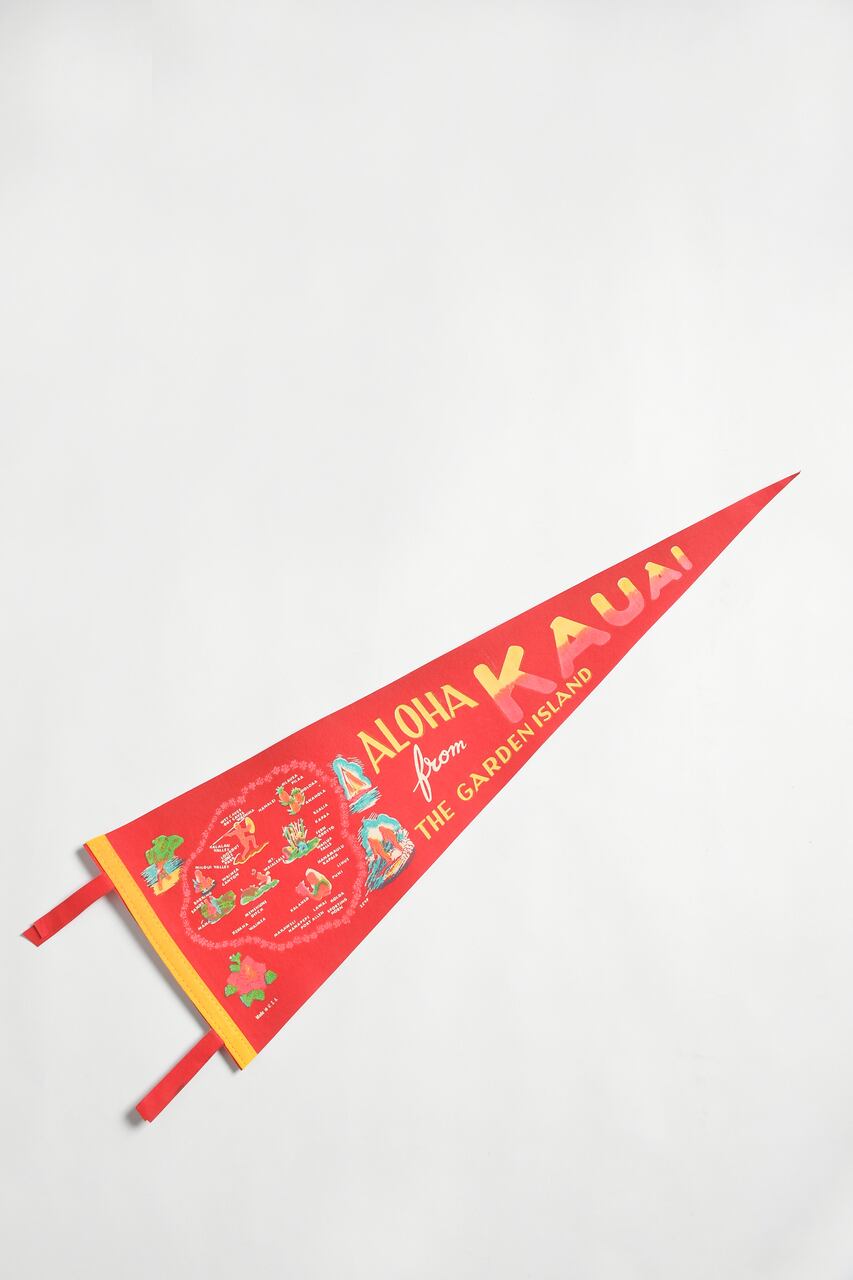 ’70年代製と思われる“ALOHA from KAUAI”ペナント。観光スポットがイラストとともに描かれたマップが目を引く。